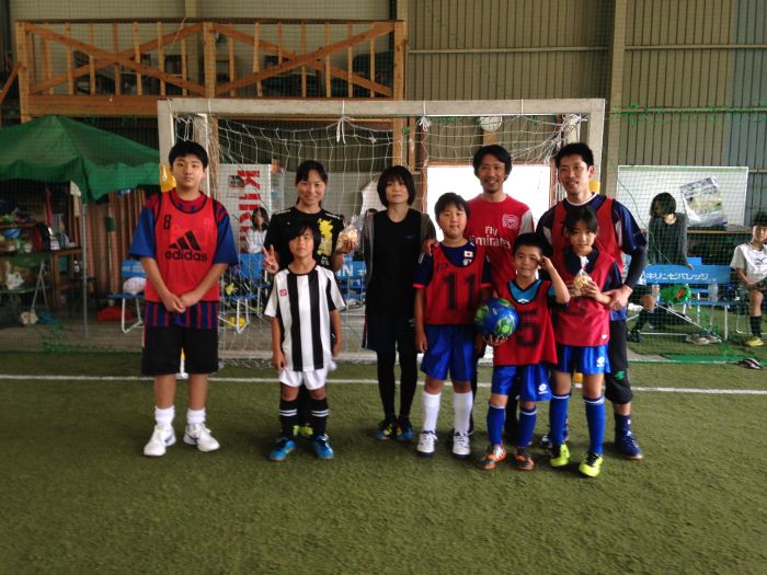 ラ・セイバ食事券をかけて5チームの総当たりリーグ戦をおこないました。小学生の参加も多く団子になりながらも大人や中学生がゲームメイクして、女性ゴール(3点ゴール)も多く生まれました。その中でもチーム力が高かったのはサクラダファミリア。お母さんと兄妹とその仲間達で連携も良く決勝に駒を進めます。女性ストライカーの3点ゴールできわどい試合を制してきたのはダイキング。