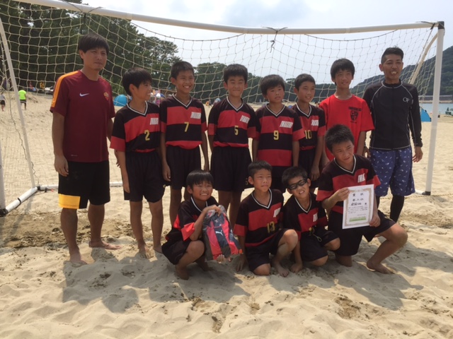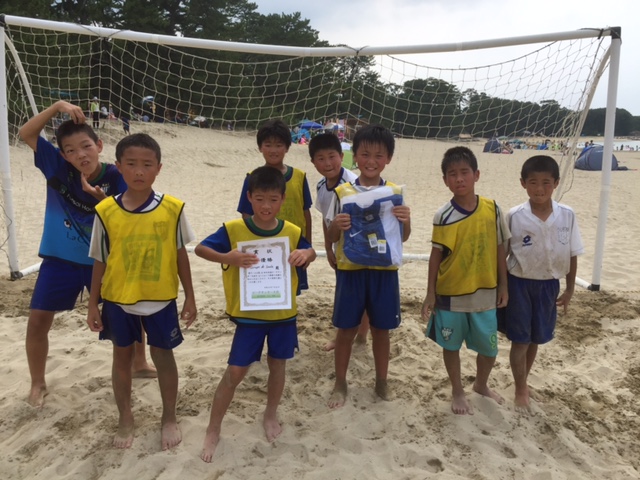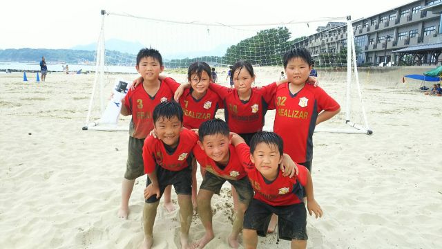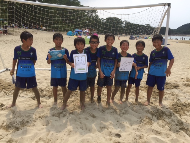 菊ヶ浜にて小学生のビーチサッカー大会をおこないました。萩市内外から6チーム参加で熱い熱戦が繰り広げられ、ホームの利を活かして地元バンブーウミガメが初優勝を飾りました。 優勝のバンブーウミガメ 準優勝 Salga de Souda 3位 岩国SSS 3位 バンブー 5位 レアリサール 大会に参加されたチームの皆さんありがとうございました。