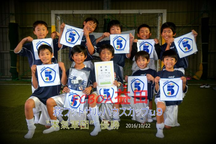総当たりリーグ戦の結果、優勝は全勝でBOA益田でした。MVPにはハードワークのBOA11番の選手が輝きました。 ↑映像はBOA益田攻守の起点となった10番のゴールシーン 準優勝は平川SSS 優秀選手は7番の選手 3位 バンブーU9 優秀選手は 4位 中村SSS 優秀選手は12番 5位 ボンバーU8 6位 SFC 大会に参加されたチームの皆さんありがとうございました。