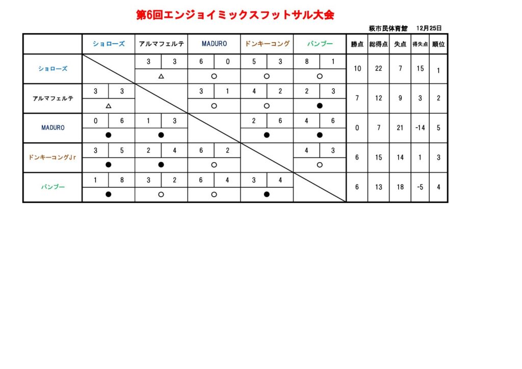 - 第6回エンジョイミックス優勝はショローズ(2025/12/25)
